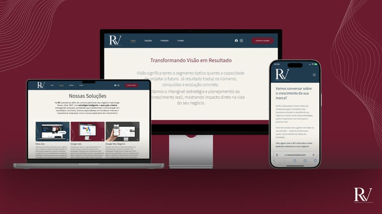 Na RV, criamos sites modernos e landing pages estratégicas que unem design impactante, navegação intuitiva e foco em resultados. Seja para destacar sua marca ou aumentar conversões, entregamos soluções personalizadas que transmitem credibilidade, engajam seu público e transformam visitantes em clientes. O resultado são páginas que não apenas apresentam o seu negócio, mas também trabalham ativamente para o crescimento dele.